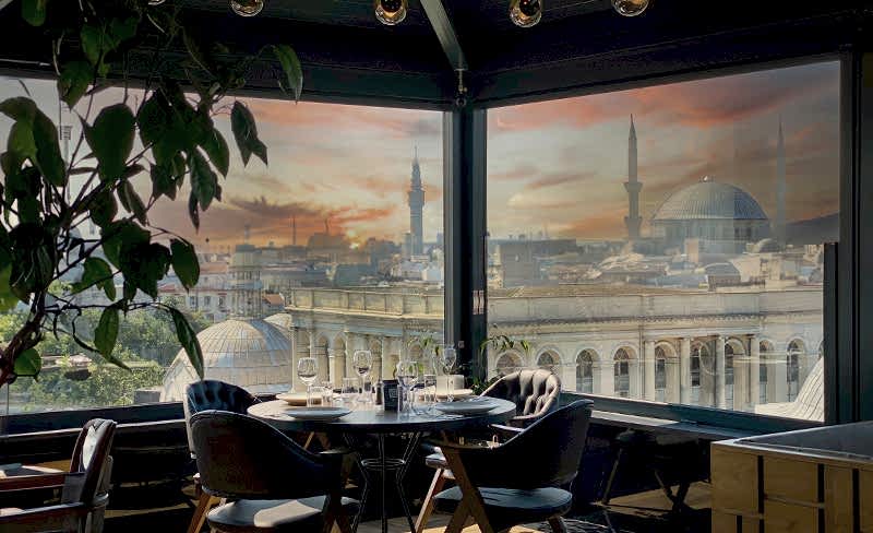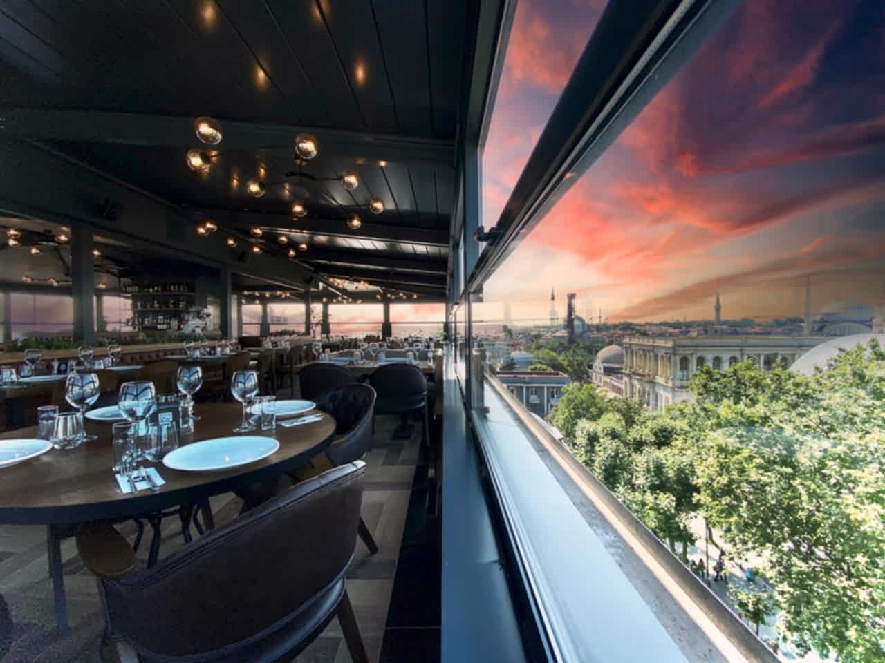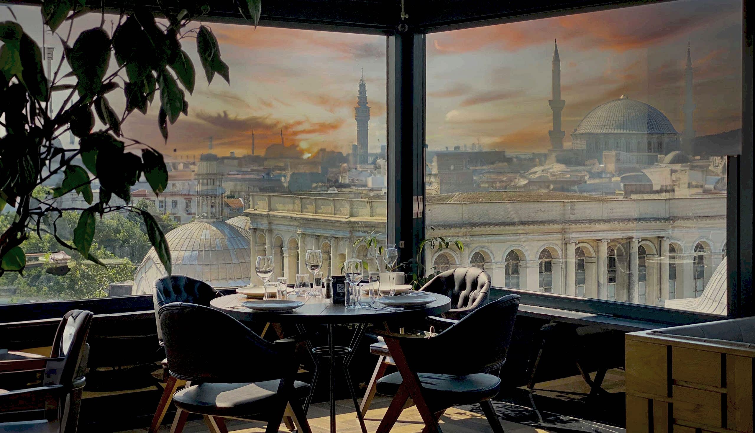 İstanbul'da Boğaziçi manzaralı Loti Roof Lounge, Türk ve uluslararası mutfağı ile zengin bir içecek seçkisi sunar.